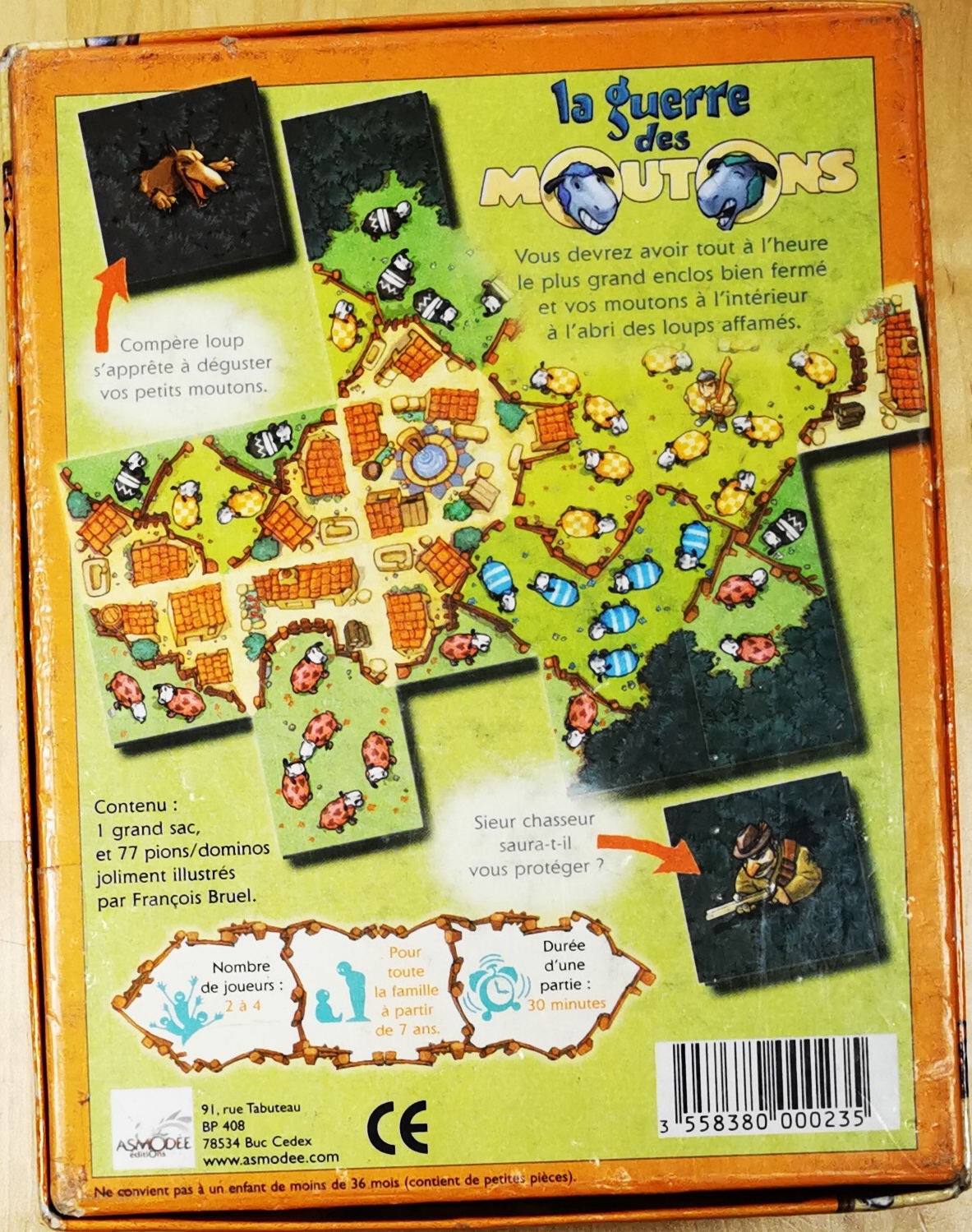 Matériel : 1 règle du jeu, 68 tuiles "moutons", 4 tuiles "bergers", 4 tuiles "bergers/moutons", 1 tuile "centre du village"